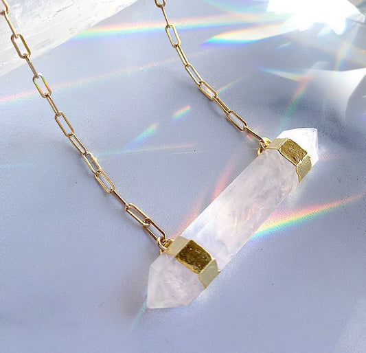 Double Terminated Rose Quartz Bar Necklace