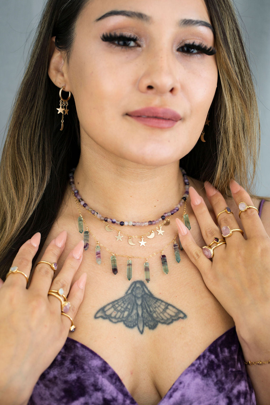 THE ETHEREAL EARTH COLLECTION was inspired by the balance between what grounds us and what lifts us higher. Earthy gems and celestial details come together in harmony, celebrating natural beauty, divine energy and the magic that exists between worlds.