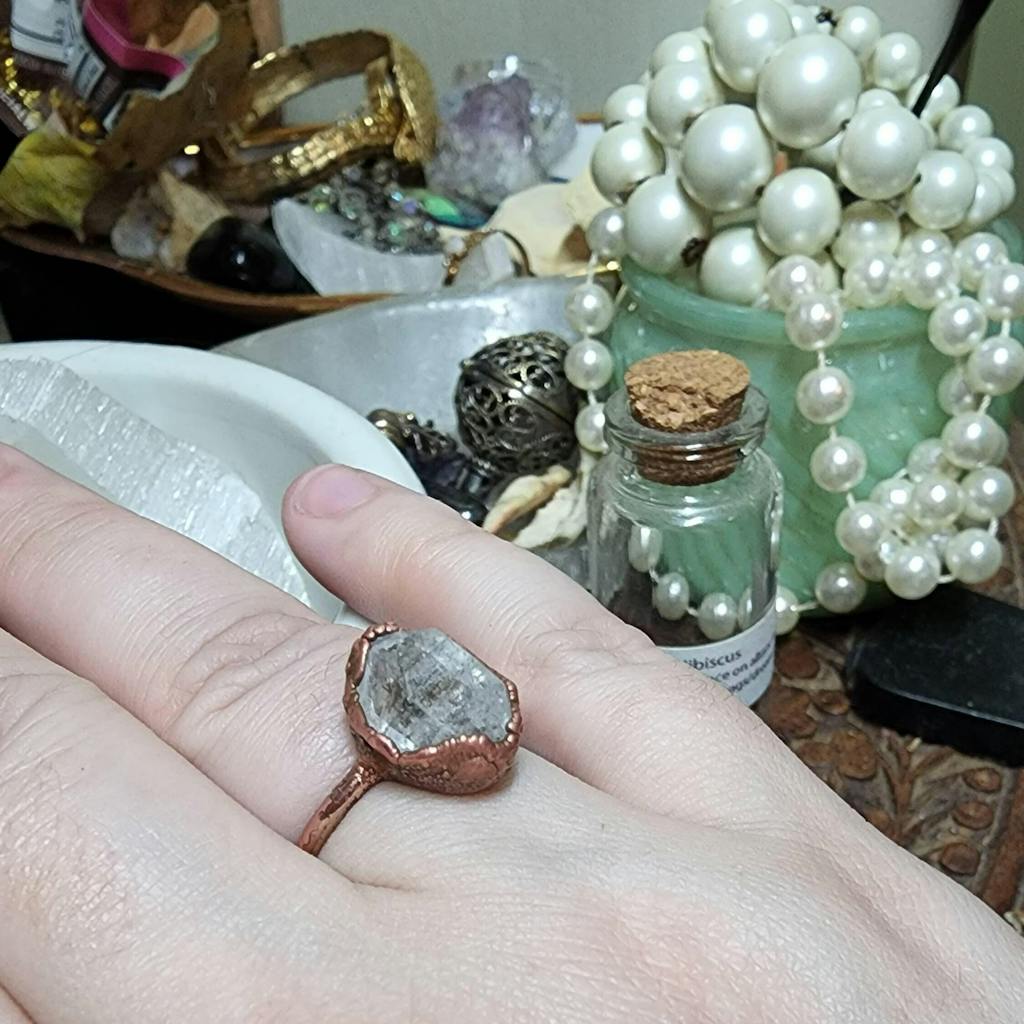Raw Herkimer diamonds are electroformed with pure copper, creating an organic style, every day ring.